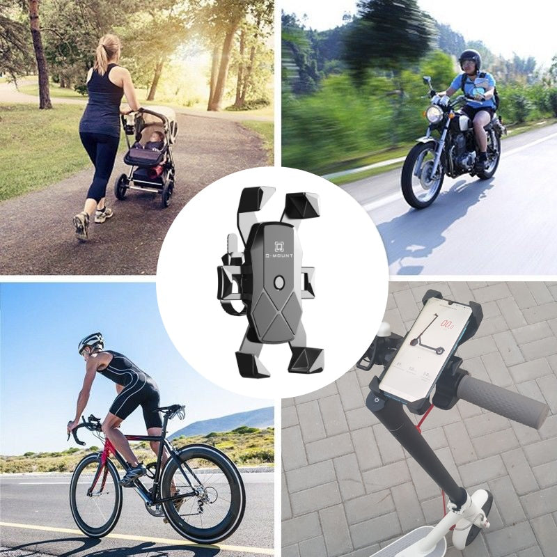 The Q-MOUNT EASY is perfect for anyone who wants to use their Map application, check their location, see calls and text messages, or listen to music while riding their bike, taking their scooter, or walking the kids in their stroller.
